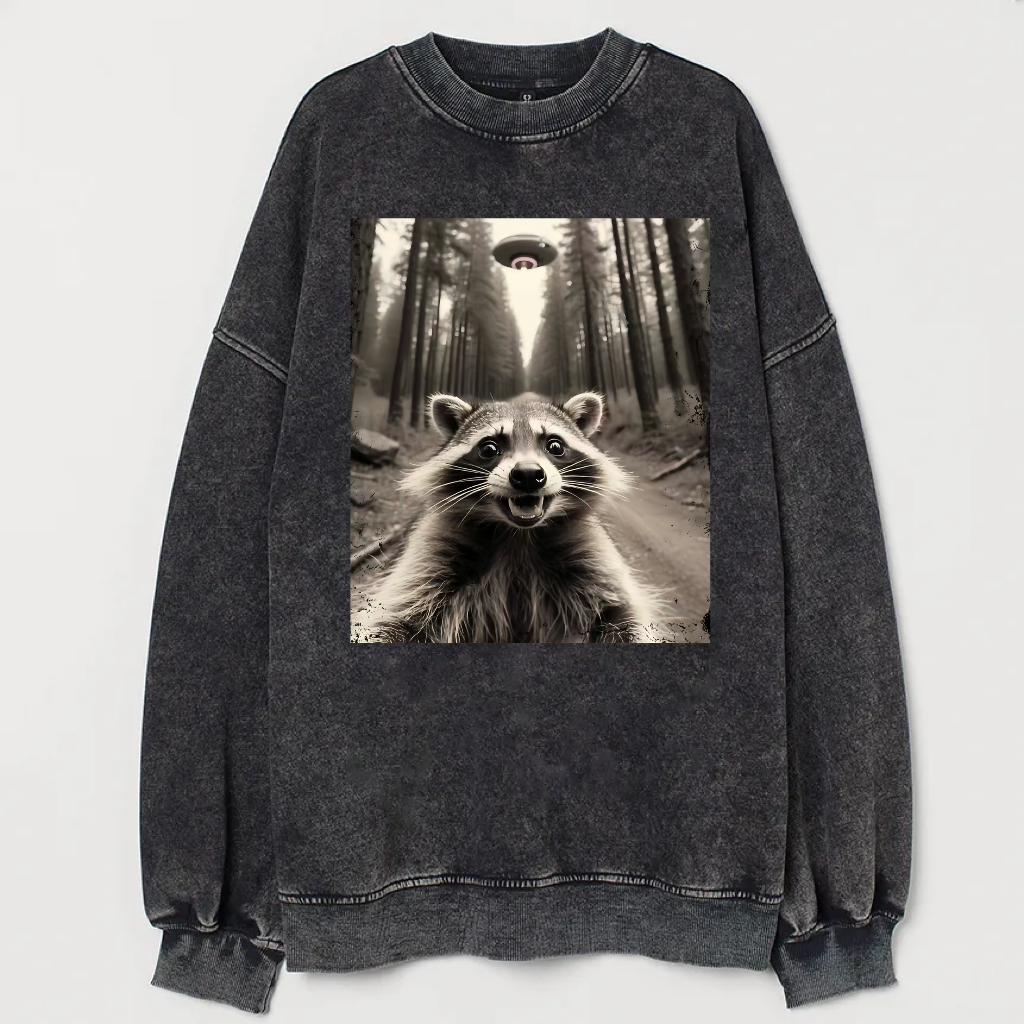 Funny Animal Selfie With UFO Art Acid Wash Shirt/Sweatshirt/Hoodie