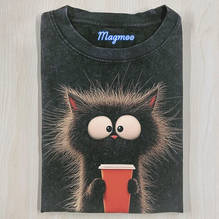CARICATURE CAT WITH A MUG T-SHIRT