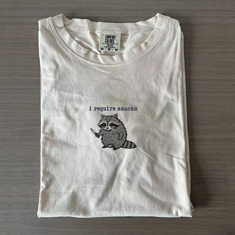 I Require Snacks Embroidered Raccoon T-shirt
