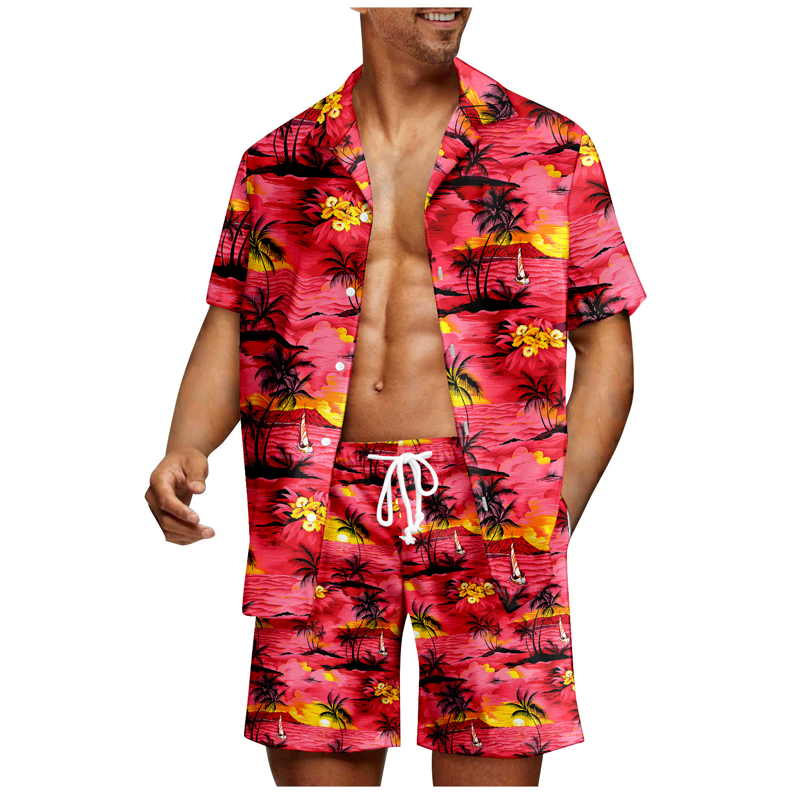 Men's Plant Print Hawaii Shirt Set