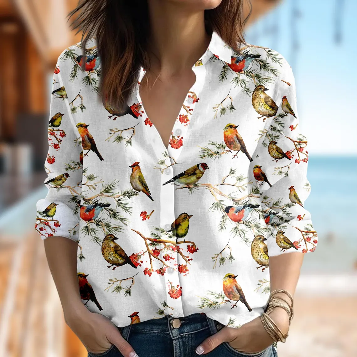 Colorful Bird Blouses Women Shirt