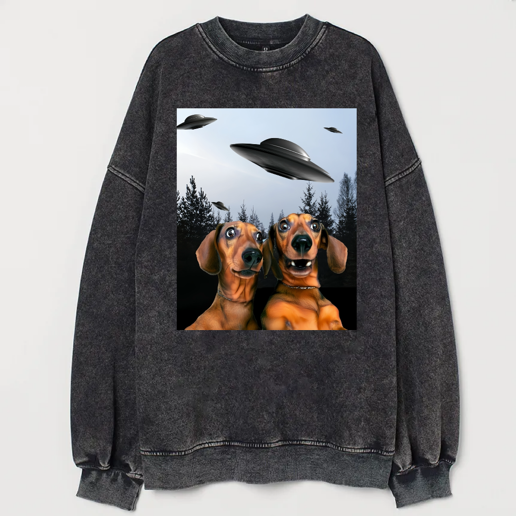 Funny Animal Selfie With UFO Art Acid Wash Shirt/Sweatshirt