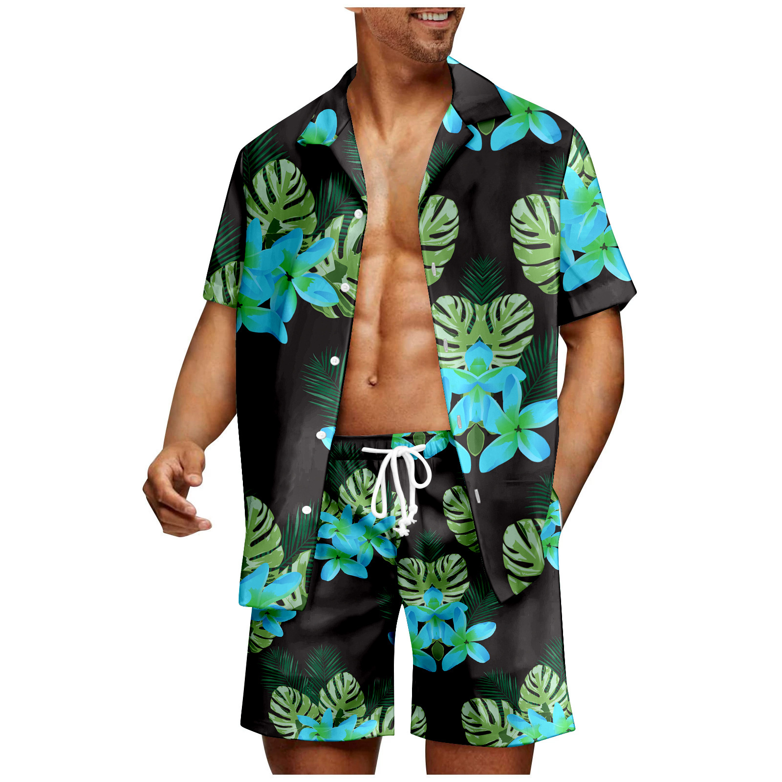 Men's Plant Print Hawaii Shirt Set
