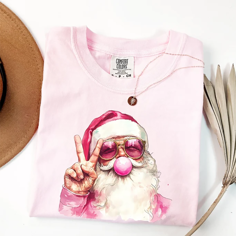 Christmas Cat Selfle With UFO Art Acid Wash Tee