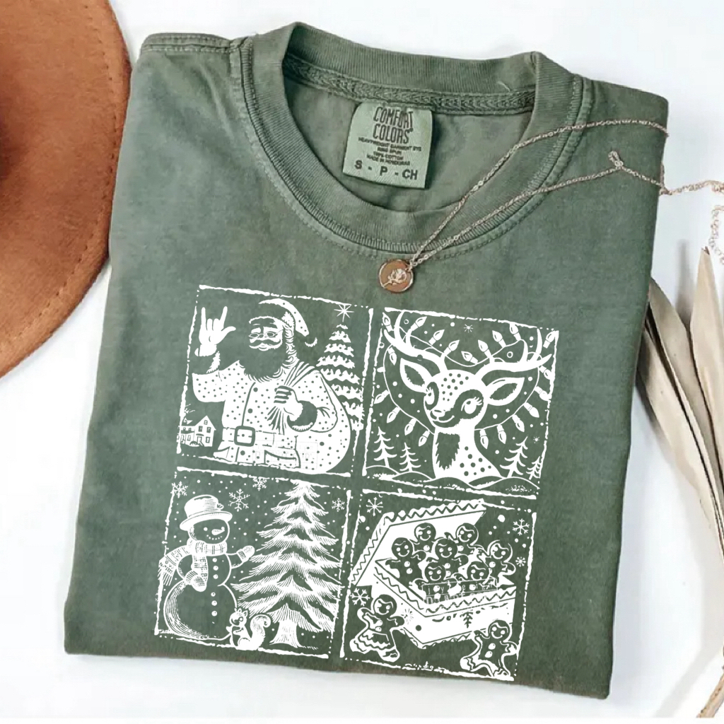 Retro Santa Reindeer Snowman Gingerbread Man Xmas T-shirt